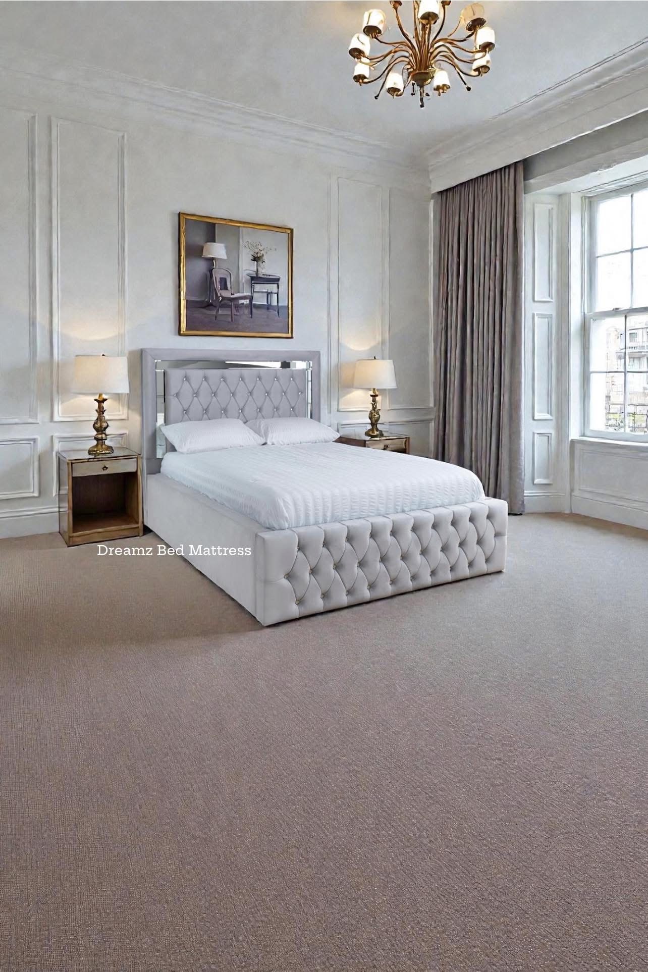 Elevate your bedroom with the Rodley Mirror Bed Frame, a stunning centerpiece that combines luxury, style, and contemporary design. Featuring a 60-inch tall mirrored headboard, this bed frame adds a sense of grandeur, reflects light beautifully, and creates the illusion of a larger, brighter space.